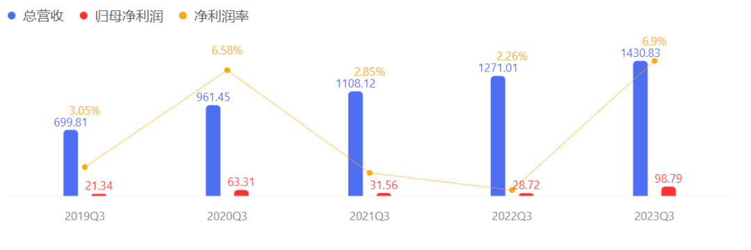 2023年第三季度,亚马逊的营业收入为1430.83亿美元,同比增长12.57%;净利润为98.79亿美元,同比暴涨243.98%。