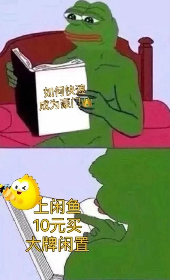 再比如,悲伤蛙版。如何快速成为豪门?上闲鱼买豪门闲置就行。