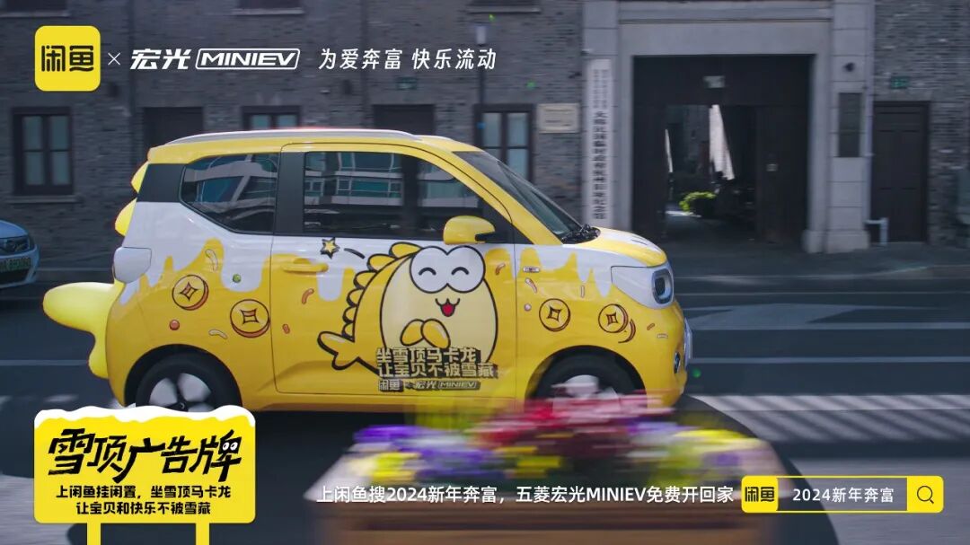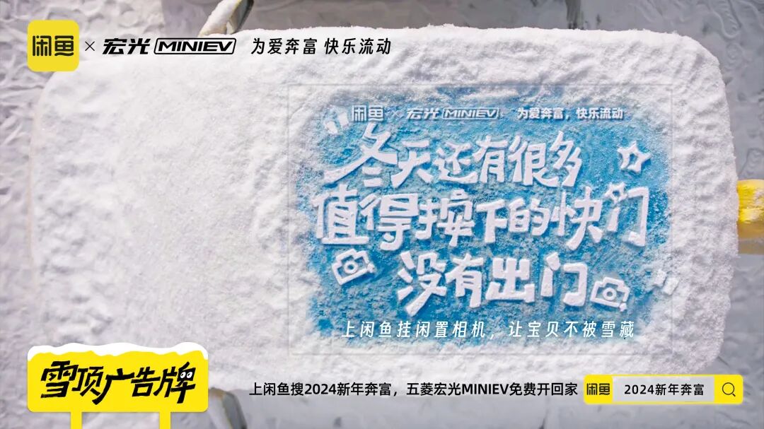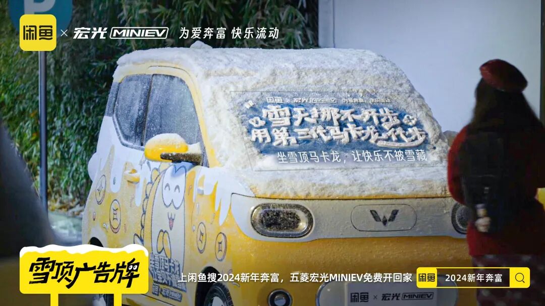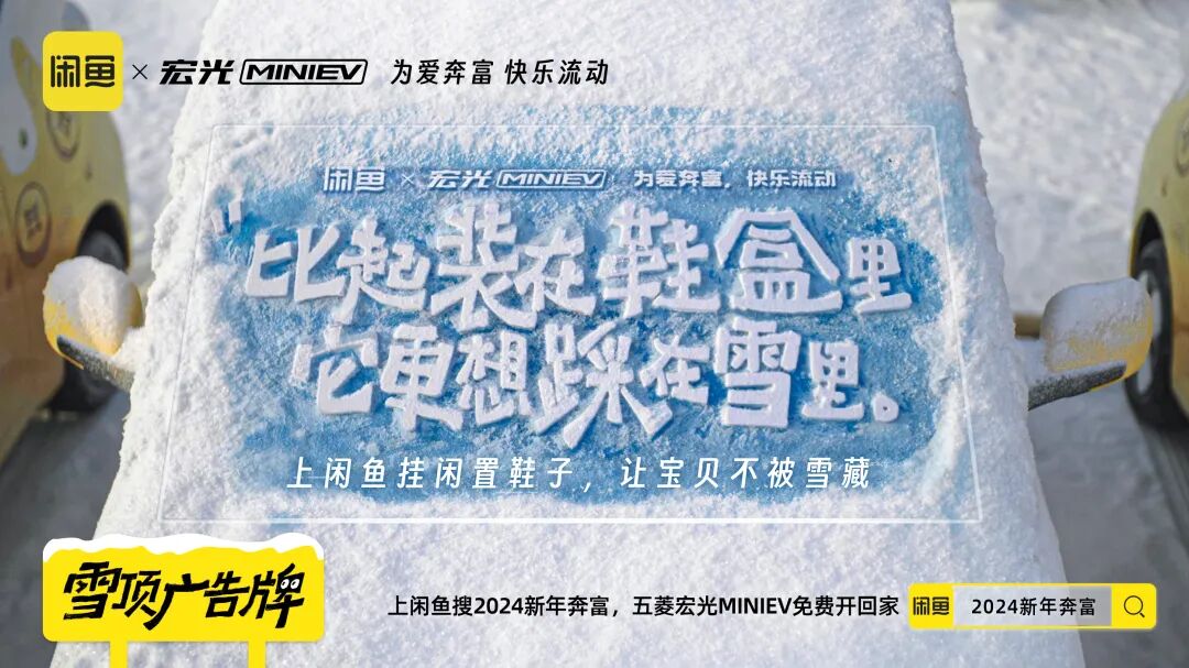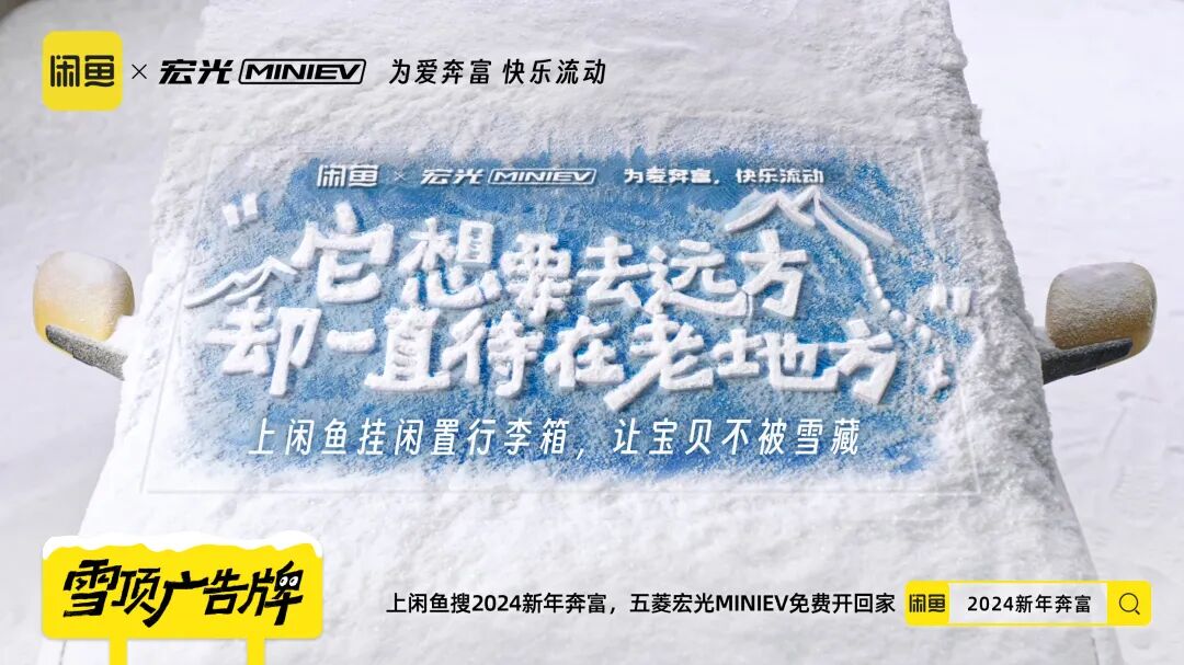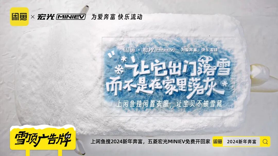 除夕来临之际,是一个每年用户出闲置回血和买闲置省钱行为的重要节点。闲鱼和五菱居然梦幻联动了,上线“为爱奔富、快乐流动”的主题活动,推了一系列既契合双方品牌调性,也和冬季场景高度呼应的创意,不仅上线了有梗的“雪藏”广告片,更是在杭州·湖滨路步行街推出了线下快闪店,扒完一顿发现闲鱼和五菱是懂玩梗的。