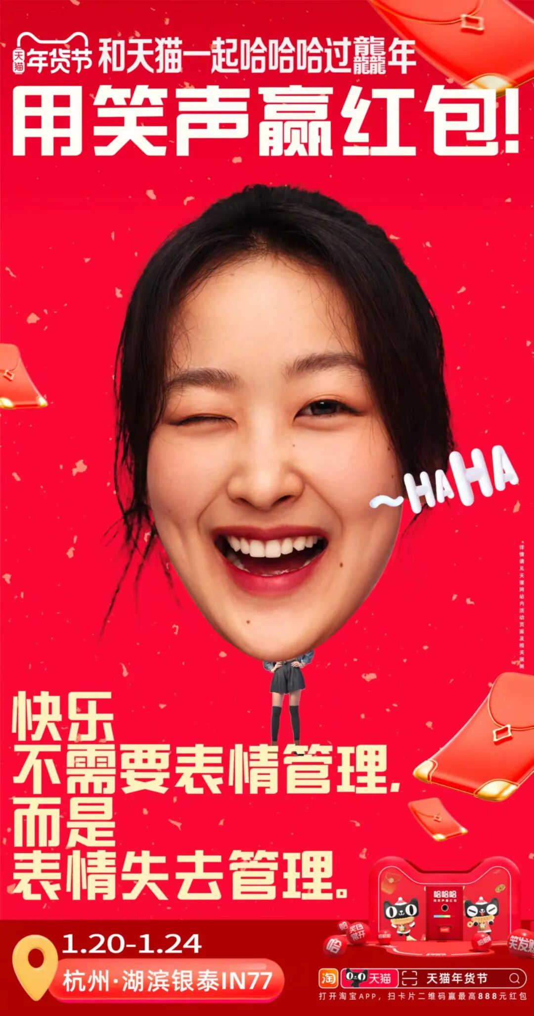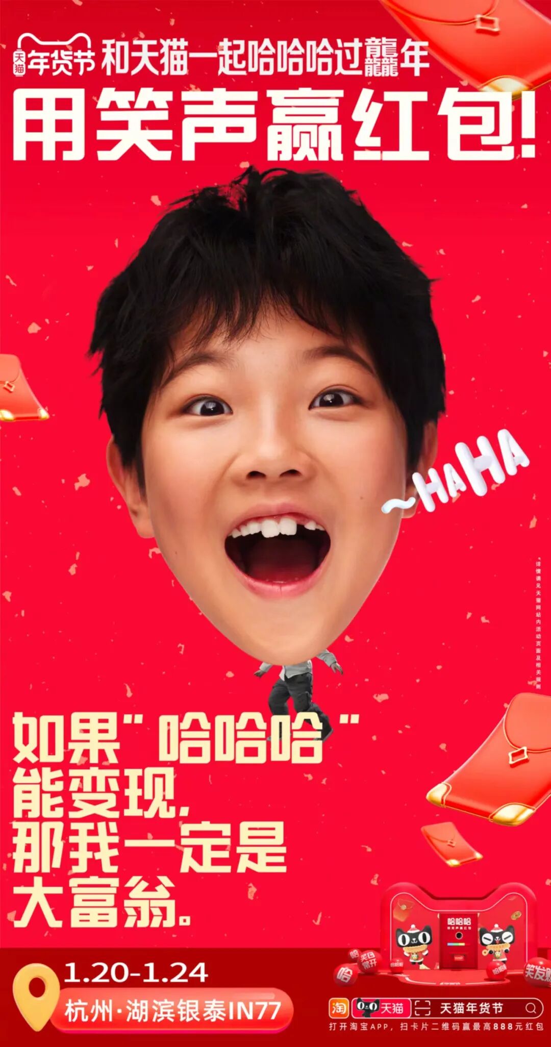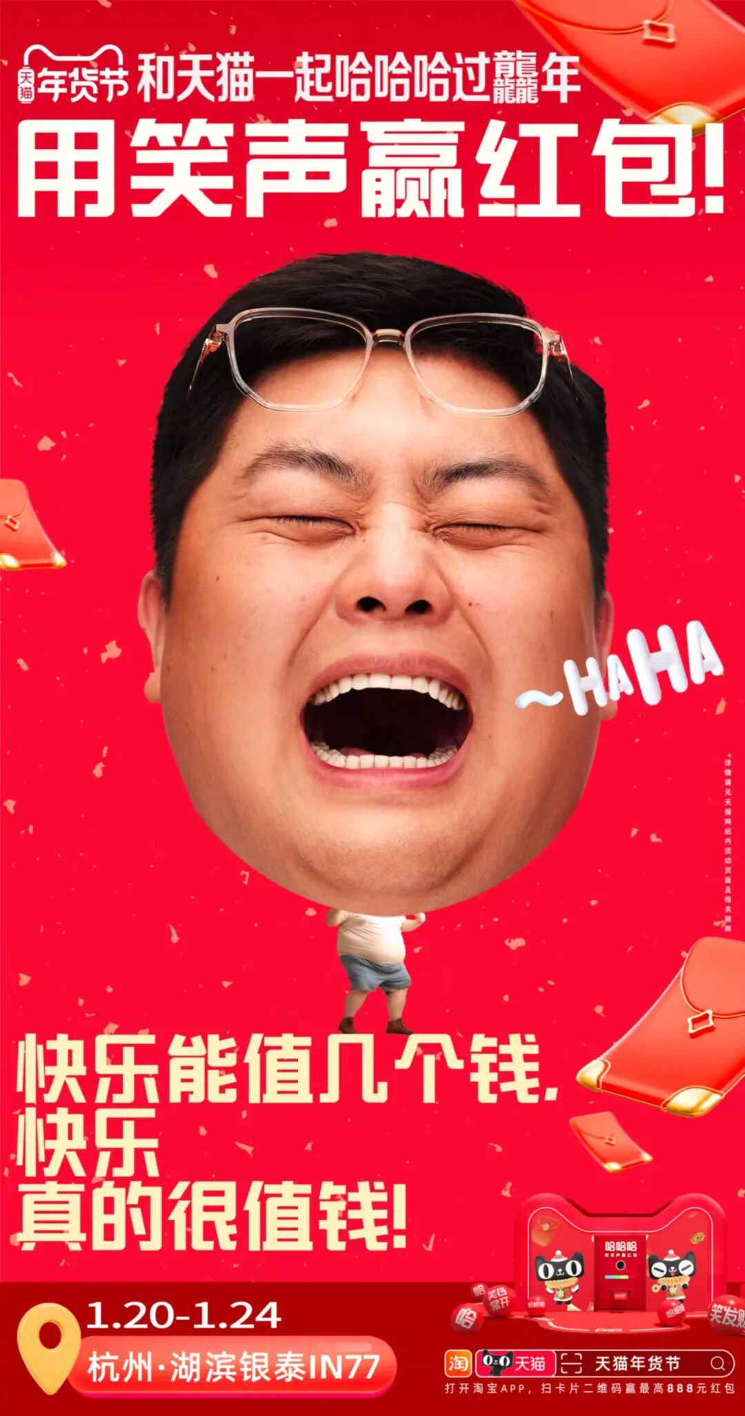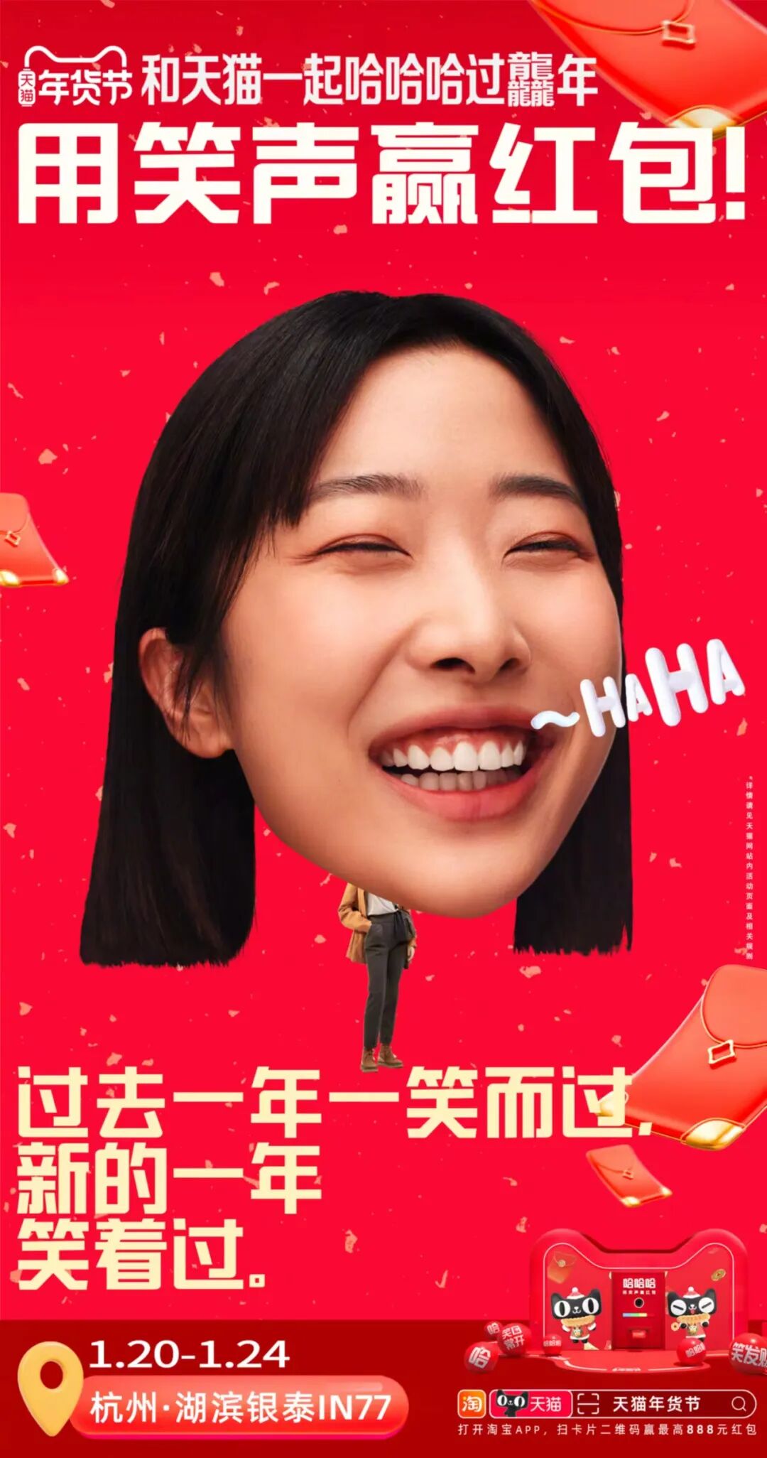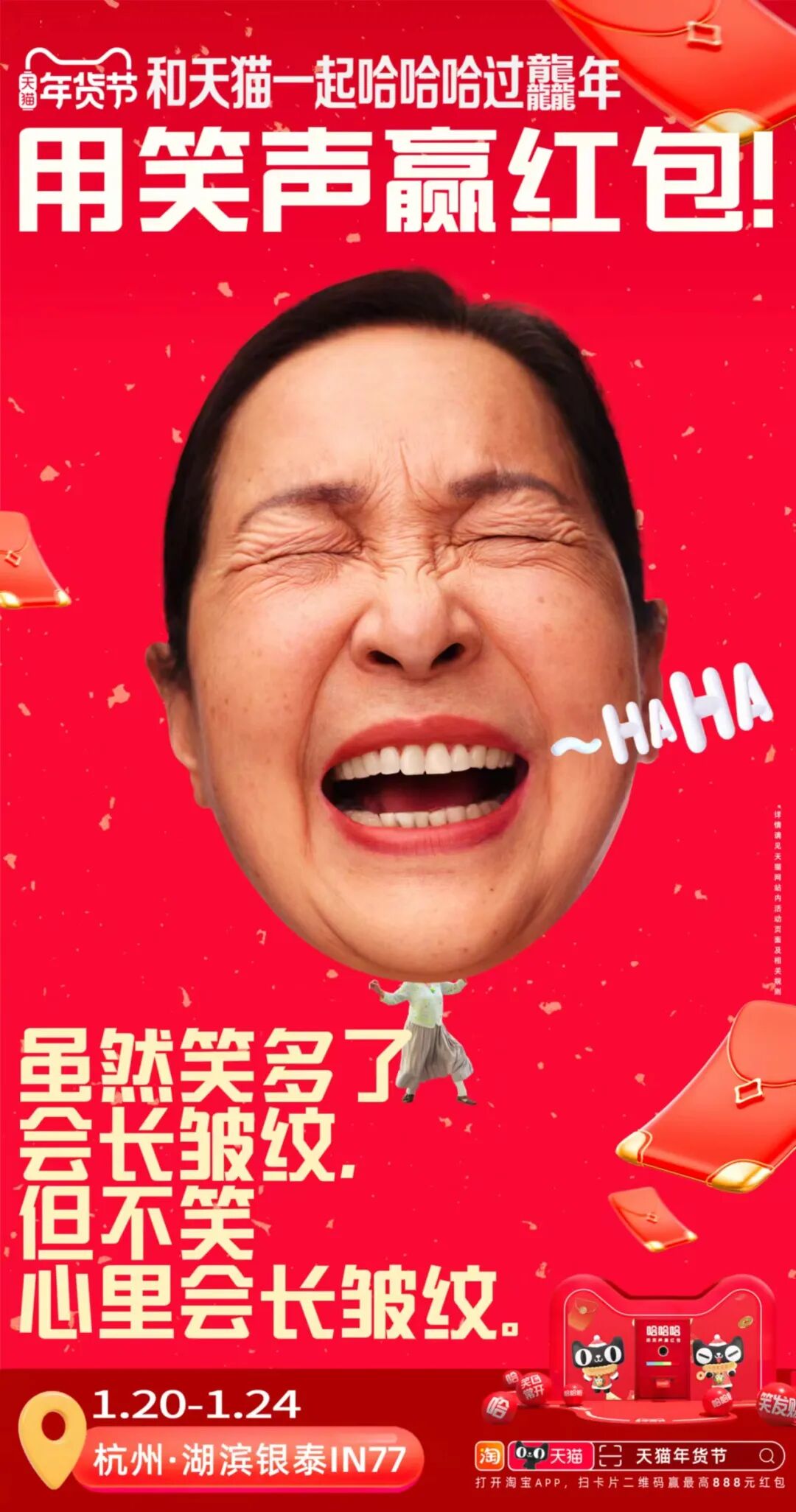 此外呢,旅客可以使用手机淘宝扫描机场传送带上的任意「哈」字,就有机会最高赢取888元现金红包。活动同期,天猫还在杭州湖滨银泰in77开设了另一个「快乐提取处」,现场举办“用笑声赢红包”的快闪活动,专门收录有趣、好玩、奇葩、开心的笑声。活动参与者可以在装置处录下自己的笑声,也能收获同样的红包奖励。通过简单的「哈哈哈」,天猫以魔性又直接的方式传达“2024笑就完事”的活动理念,并将「笑」变成极富感染力的互动方式,让天猫年货节以快乐而积极的情绪打动受众。