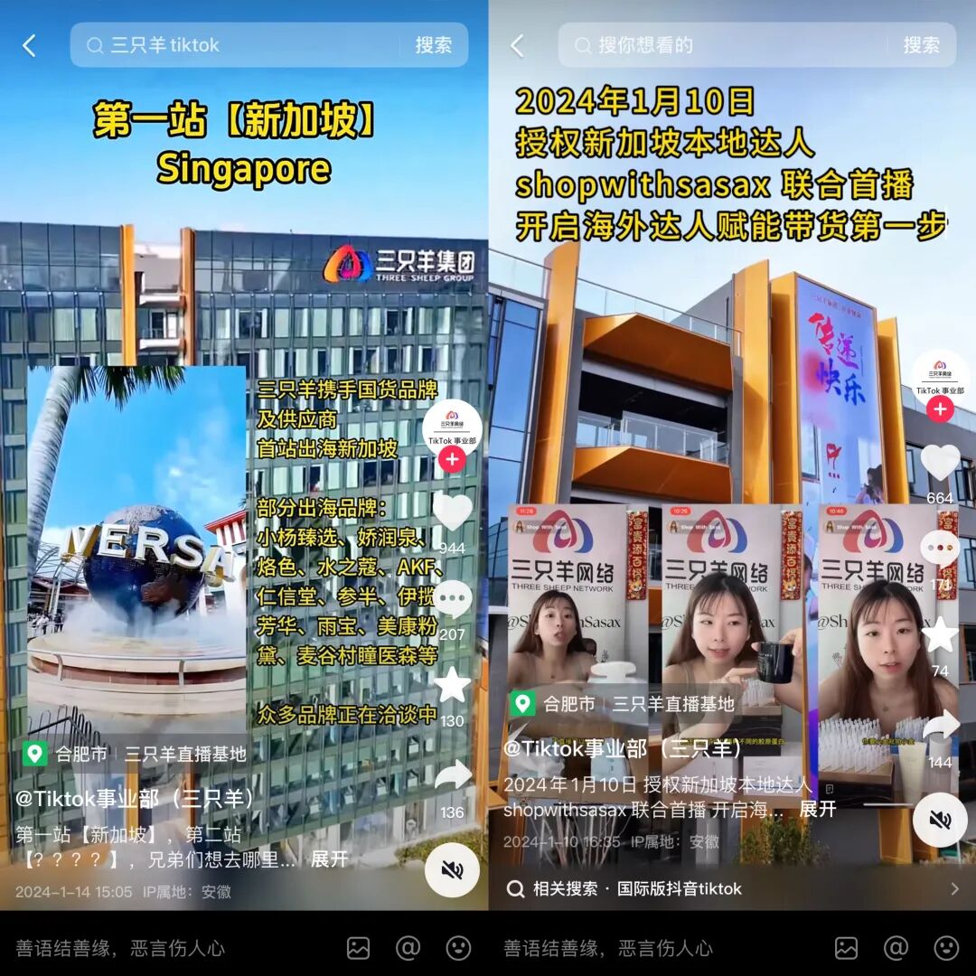 而在2023年第四季度,三只羊旗下的Three Sheep Network还荣登TikTok Shop东南亚跨境优秀机构榜单。出海成绩背后,三只羊都做了什么?小杨哥的国内打法能不能复制到海外市场?三只羊又该如何开拓海外市场?