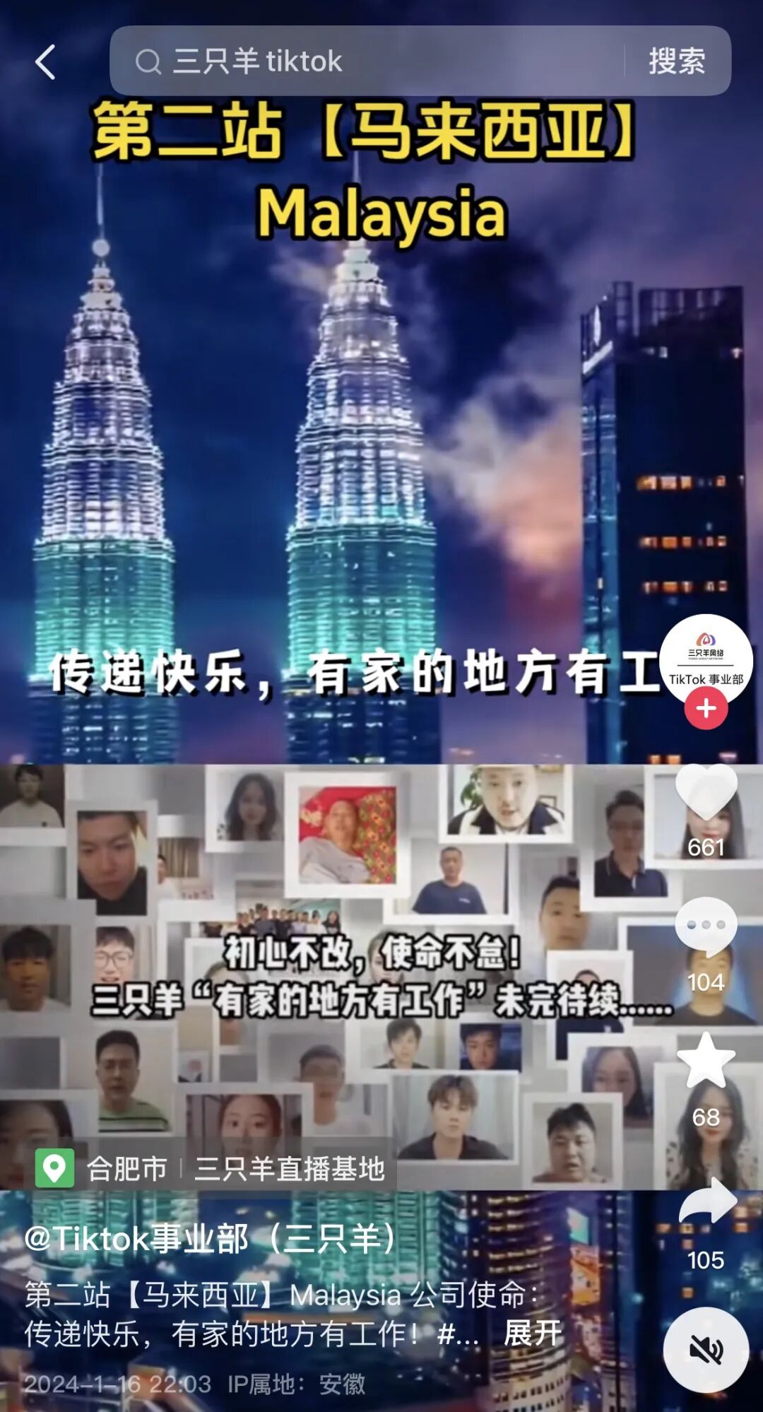 近两年TikTok的电商板块正复现抖音电商前两年在国内高速增长的态势,种种利好条件之下,三只羊的新加坡初战有一个良好的开端。三只羊的出海进程仍在继续,根据三只羊TikTok事业部官方账号透露,目前已经确定把马来西亚为三只羊出海的第二站。