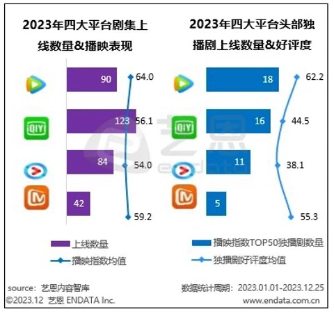 内容艺术,是指在数据层面的“爆”以外,平台更注重内容本身的时代价值、艺术质感,以及在播出后衍生的国民影响力和社会责任感。2023年市场涌现了很多非常规的爆款剧集,或是题材特殊、或是视角少见,都有一定观看门槛,但平台仍愿意花时间和精力去打磨这些“艺术品”,引领审美,最终结果也验证了投入正确性。腾讯视频剧集的播映指数、高口碑剧集数量均居平台首位,《三体》《漫长的季节》《繁花》无论热度还是口碑都立下了一个“新标杆”。