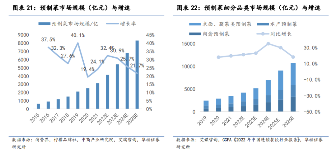 华福证券预计,2023年我国预制菜市场规模达到5165亿,2021-2025年CAGR达到26%。其中B端市场占比80%,C端占比20%。