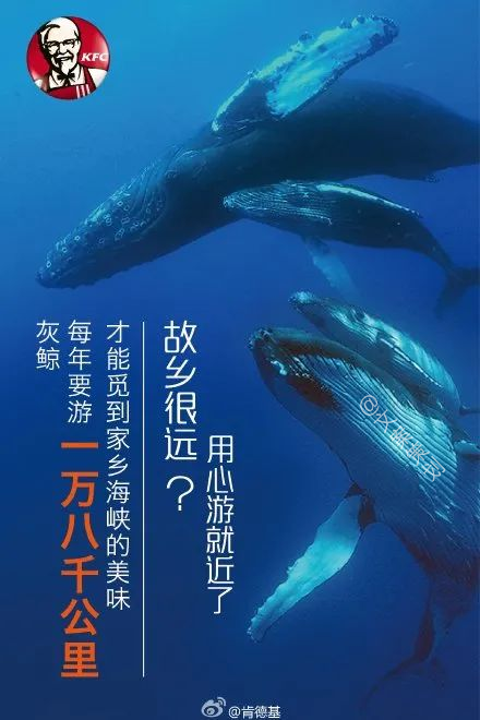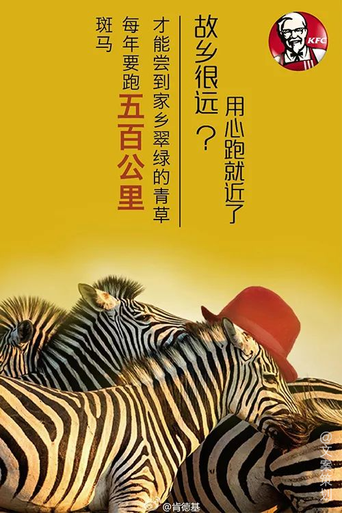 这组文案,我个人认为是春节借势文案中相对优秀的了。通过一组组看似不可能完成的动物迁徙行为,侧面烘托出游子和故乡的羁绊。