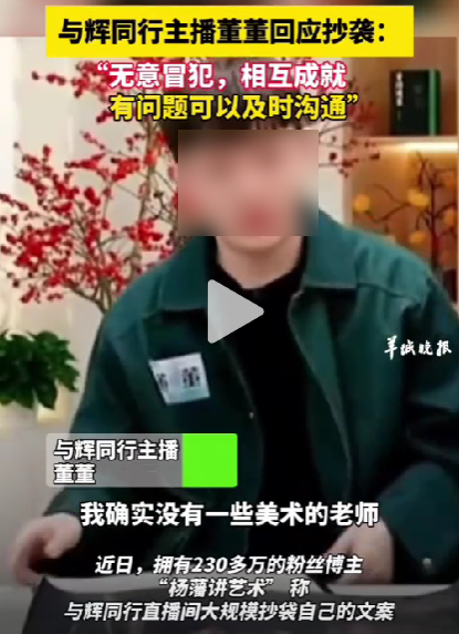 董董称「自己大学时期一直在看杨藩的视频,非常尊重后者的创作,因平台规则才没有提到后者,以后如果使用会告知」。