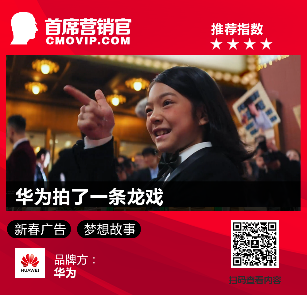 近日,华为的新春广告以龙为元素,拍了一出开年大戏《踏上寻龙绮遇》。短片从正在思考创作内容的小女孩视角展开,揭示了每个中国人心中都有一条龙。