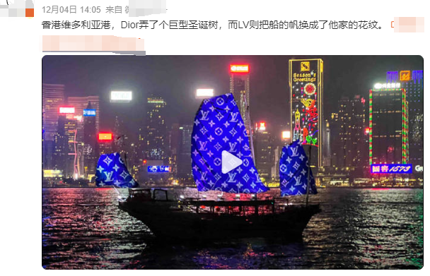 一会儿是圣诞节在维多利亚港放了艘印满LV Logo的帆船,开始搞“节日营销”。在寸土寸金的香港,感觉这广告费比起90万,只会高不会低。