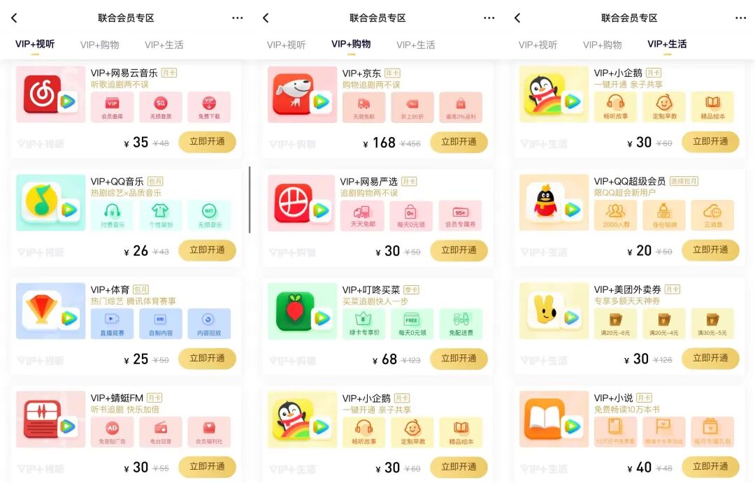 这类似于国内平台的“联合会员”。视频VIP+体育VIP,视频VIP+动漫VIP,视频VIP+音乐VIP,多种选择一站式搞定。