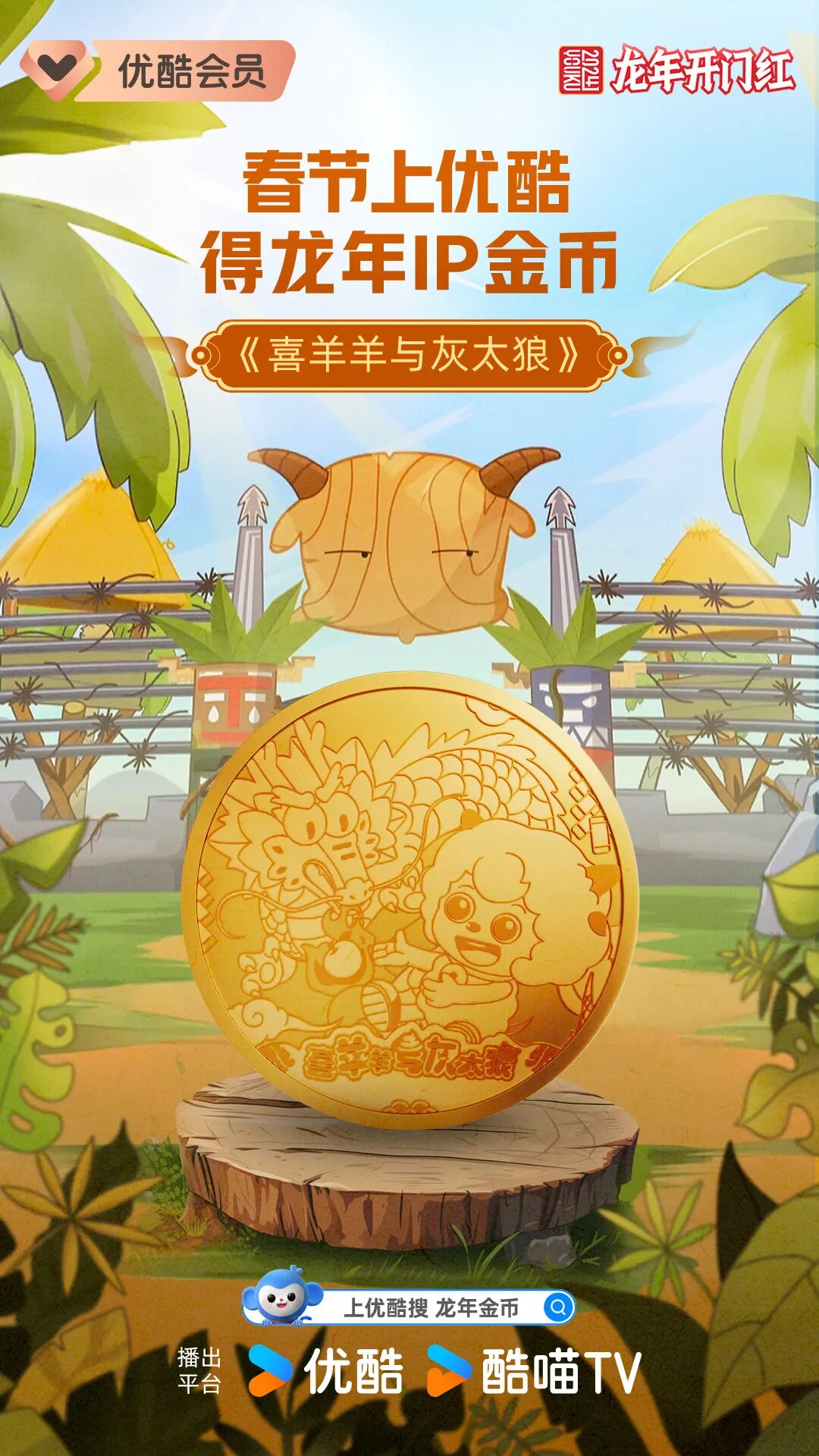 据了解,“春节上优酷,集龙年IP金币”活动,已于今日(2月2日)正式上线。其玩法非常简单:活动期间,优酷SVIP会员和VIP会员用户可进入活动主页面,参与不同任务,获得酷金币(原“星光币”)后,可用于兑换IP碎片,集齐3个同一IP的IP碎片后,即可参与抢该IP的实体IP金币活动。