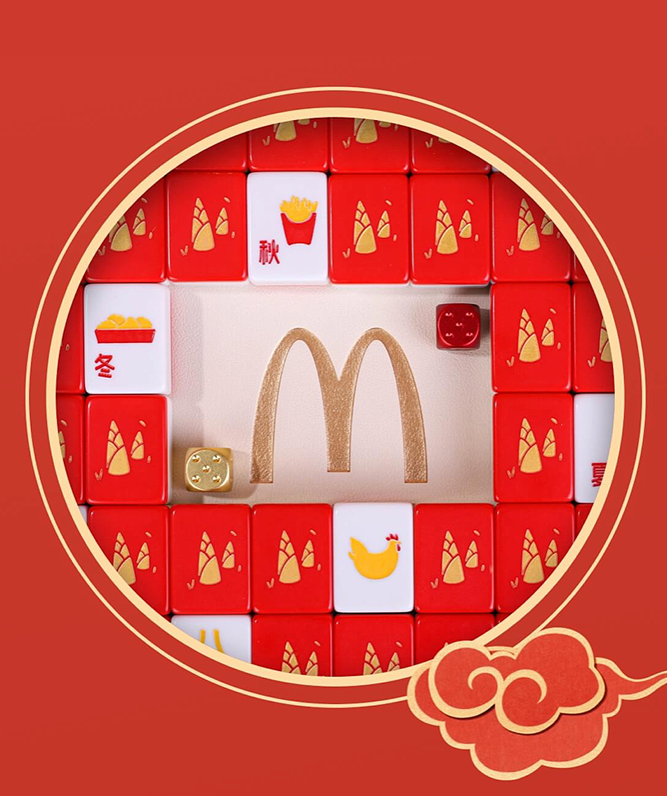 。配合经典红黄配色,让其看起来红红火火、富富贵贵,来寓意新年“此刻是金节节高”。除了将东南西北的“东”,强行谐音成了“杜”之外,还将麻将中“一筒”变成了杜蕾斯的套套符号。在箱体和麻将背面印着经典的logo,颜色则是选择对比度明显的黑白。将奔驰经典元素三叉星铺满,寓意其像夜空的星星一样,点缀在麻将盒上面。设计上,还将经典logo做成“筒”的图案,将细节拉满。确实蛮猎奇的,毕竟这也是咱能拥有的最便宜的奔驰单品了。。。。。明人不说暗话,细节设计得很到位,宝马车主也很想要一套。作为受众广泛的一个娱乐项目,品牌在围绕麻将做营销上面,没少花心思。一方面可以和许多大家想不到的品牌,推出和品牌形象有着巨大反差的联名营销给大家惊喜,另一方面也方便适应节日氛围,做一波节日借势,红红火火将气氛燥起来。