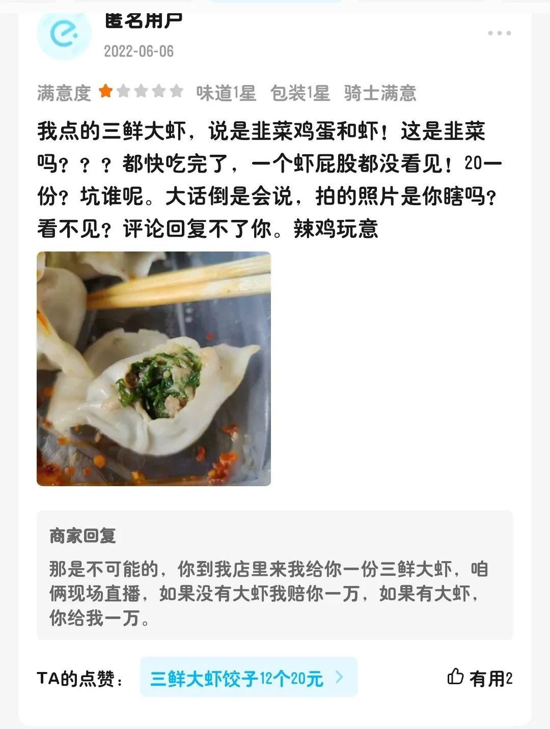之后过了一年,“老板回怼差评”再次上了热搜,不过这可不是什么搞笑的事。一位自称是“某985大学建筑系在读研究生”,在自以为是的一顿操作后得出结论:店家少放了一块肉,并以此为由打了差评。大概商家也是被这种逆天差评所震撼,不仅简洁明了地解释了原因,顺便还对着这位高材生一顿怼。在那里,你能感受到人与人之间的差距,是有多么的大。你吃到了一顿难吃的饭,你迫不及待想要在差评中抒发你的愤怒,然而老板只回了你一个字:“嗯”。等后面的人再吃到难吃的想打差评时,老板也有办法,就是不知道是不是真的炒了那个厨师:还有一种老板,他们面对顾客的无理差评绝不惯着,能用最短篇幅反击就尽量将字数压到最低:在他们眼里,差评可能都不能算差评,只是顾客提出的一个要求:还有一类老板估计没有看《消失的她》,面对顾客质疑时非常喜欢用赌博的方式来解决问题。