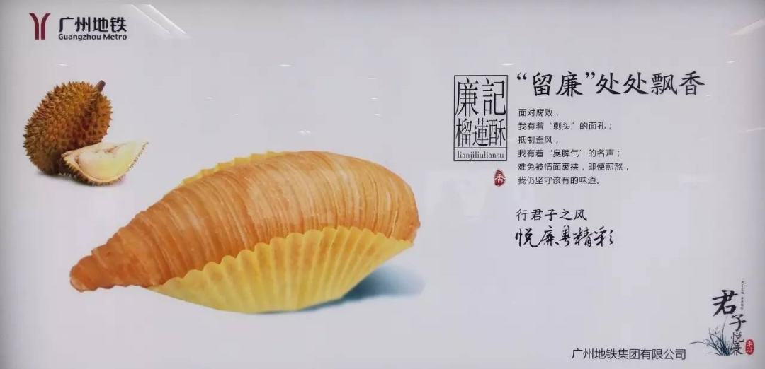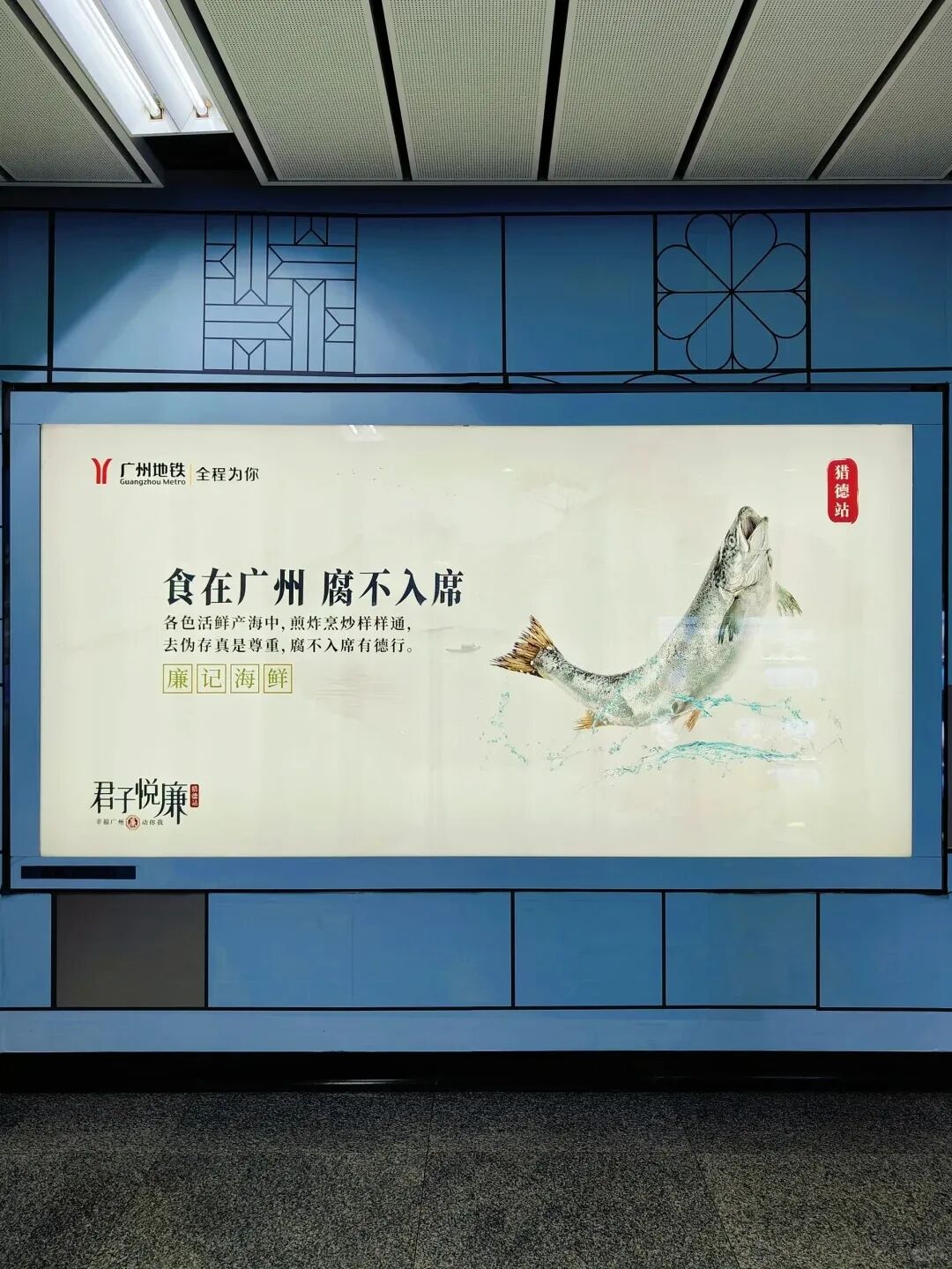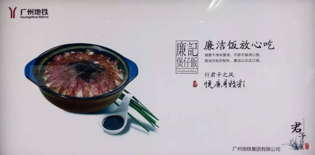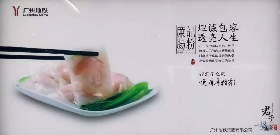 岭南饮食文化源远流长,口味丰富的美食吸引着众多人前去打卡,广州地铁广告根据每道特色菜,延展出为官做人的廉政之道。