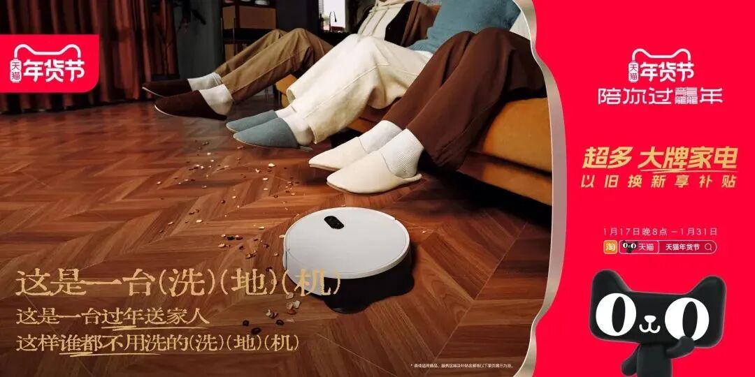 而且还邀请神仙姐姐刘亦菲以“生活方式代言人”的身份来召开“不用备年货发布会”,突出在美团上置办年货又快又省。天猫也在北上广的电梯、写字楼、商超等场景投放了一则年货节广告,告诉大家过年送礼可以送天猫年货节的这些商品:金手链、酒、核桃、降噪耳机、马面裙、预制菜、洗地机。此外,还在每一张海报上附上了相应的应用场景,并用文案阐释了送礼的理由以及礼物的价值。所以说,在品牌都希望借春节档提效增量的情况下,饿了么发出的「祝你过年不用饿了么」的倡议无疑是一种反向营销策略。从营销层面来说,在这样流量厮杀白热化的节点,选择和其它品牌“唱反调”,不失为一种出圈的策略。