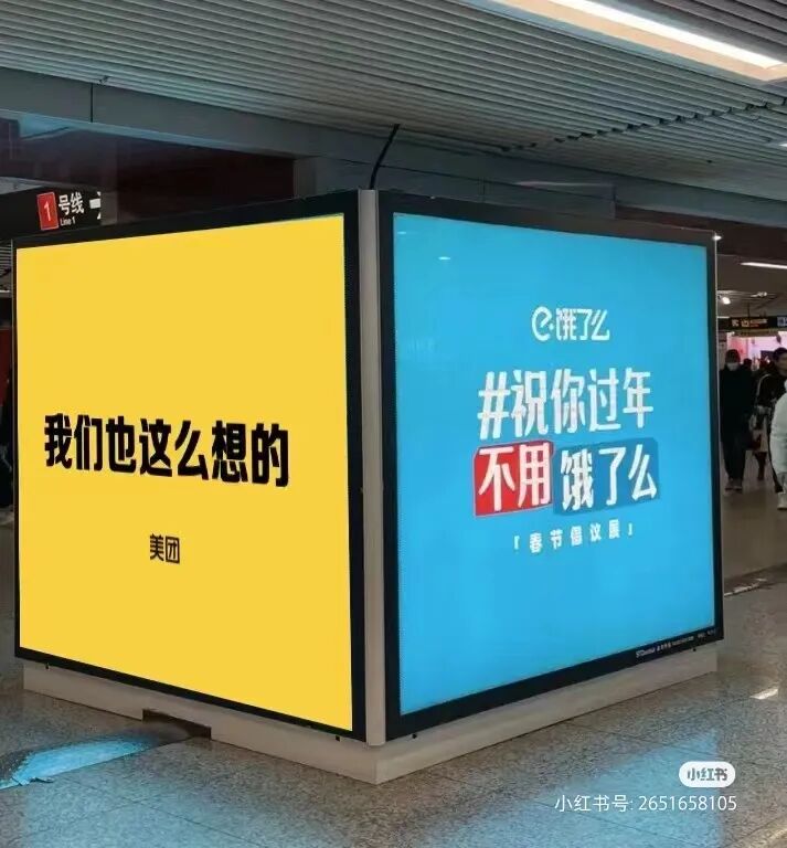 还有人直接在隔壁P了一组美团的广告:我们也是这么想的。真的要被笑死。