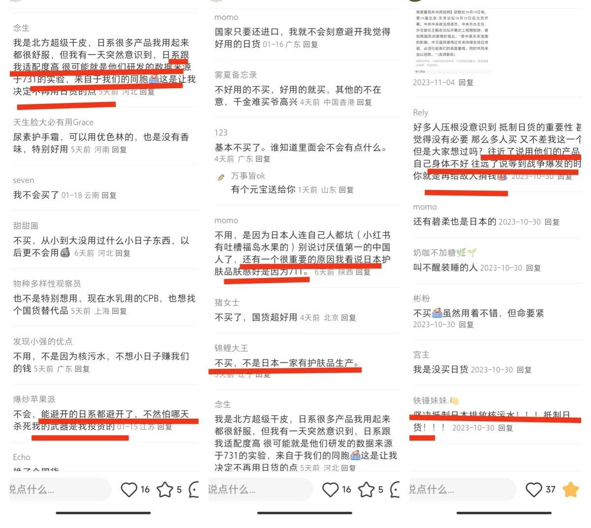 在小红书上,搜索“SK-II”,可以发现自核污水排放后,很多用户自发抵制日系护肤品牌,并形成了寻求替代品的潮流。一位用户称,“我换护肤品不是怕辐射,就是觉得这事太不地道了,自此后打算换掉所有日货,不让日本赚我的钱”,这种心理反映出不少国人的消费理念。