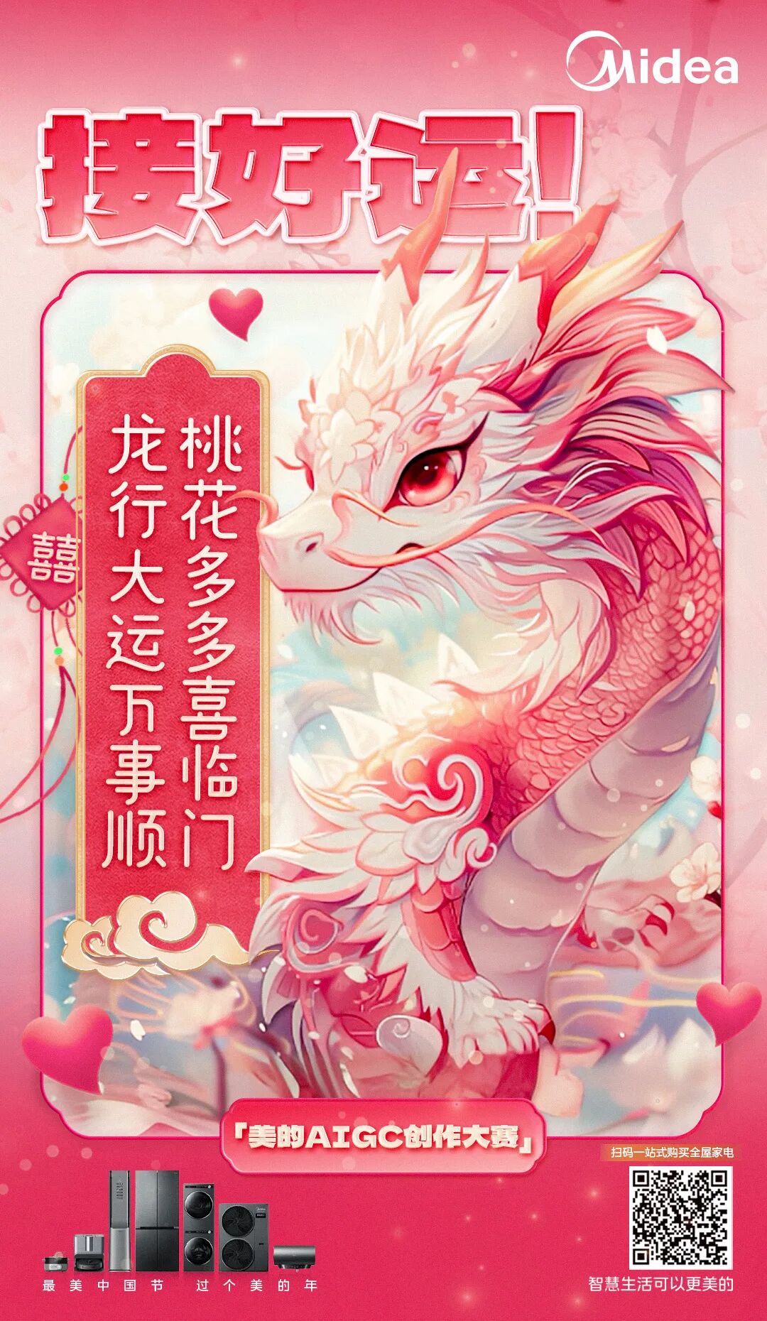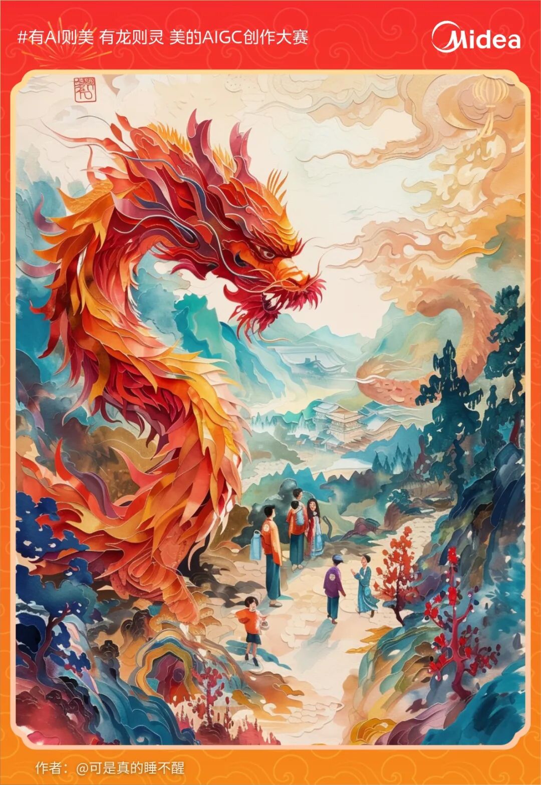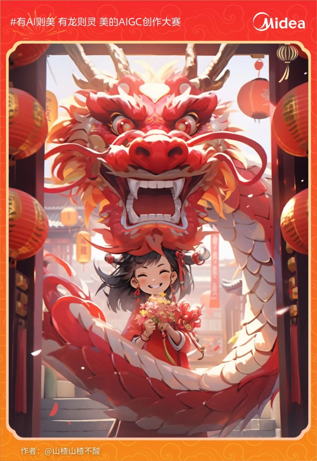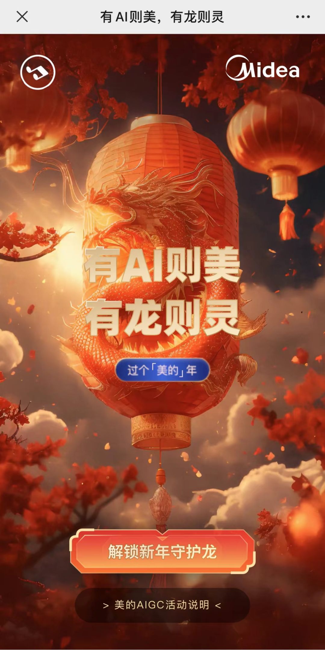 除了举办AIGC创作大赛,美的还推出了守护龙互动H5,通过有趣有梗的新春问答,即可解锁自己的守护龙。以更低门槛的互动H5真正地实现破圈,让更多群体参与进来。