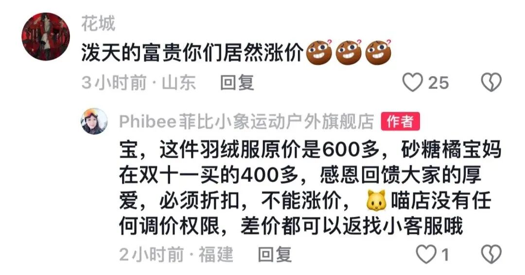 而当网友质疑菲比小象折扣越做越高的时候,品牌的公关也没有做好。一会儿是顾左右而言他,说自己质量好:“极寒天气,为小娃娃们保驾护航的装备,不能乱来。”