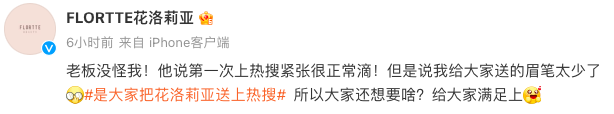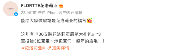 花洛莉亚就走亲民路线,一边感谢消费者#是大家把花洛莉亚送上热搜#,一边送粉丝大礼包,提高消费者的好感度。