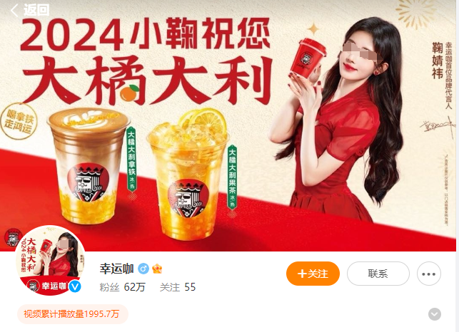 因为没怎么费力就把七夕节的新品知名度打出去了,所以,幸运咖很快就听劝地真找鞠婧祎做了代言人。