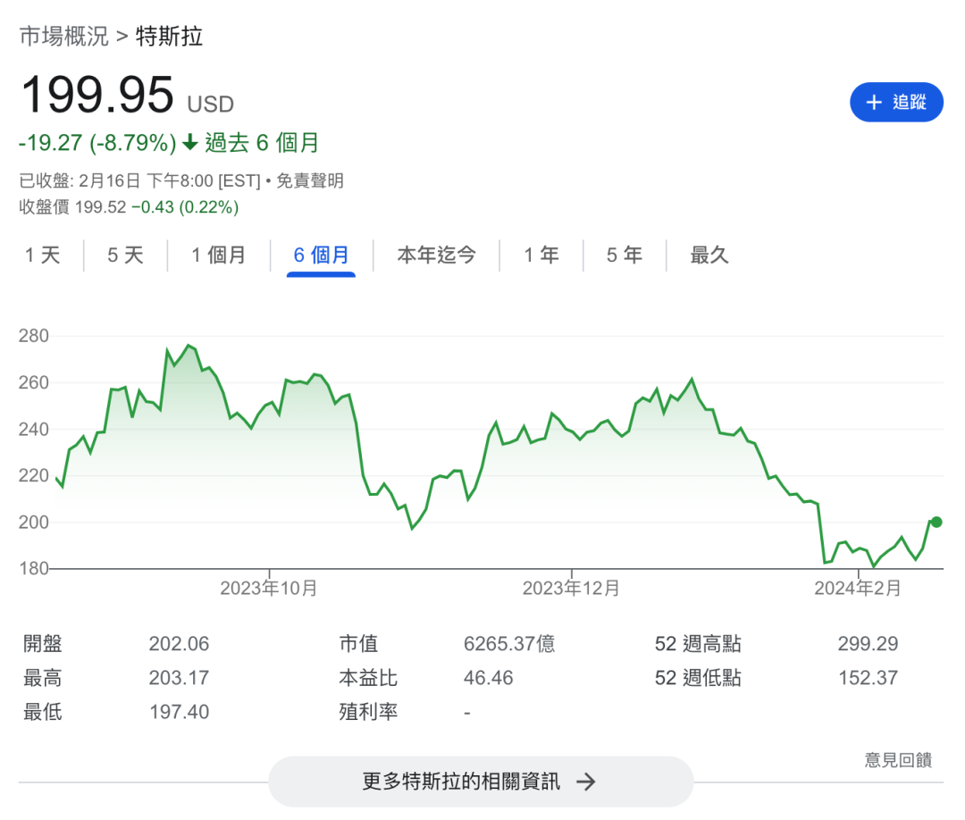 事实上,结合2024年以来的股价数据,投资者确实有足够的理由看衰特斯拉。目前特斯拉的股价仅为200美元/股左右,相较2023年末265美元/股左右的阶段性高点下跌近25%。
