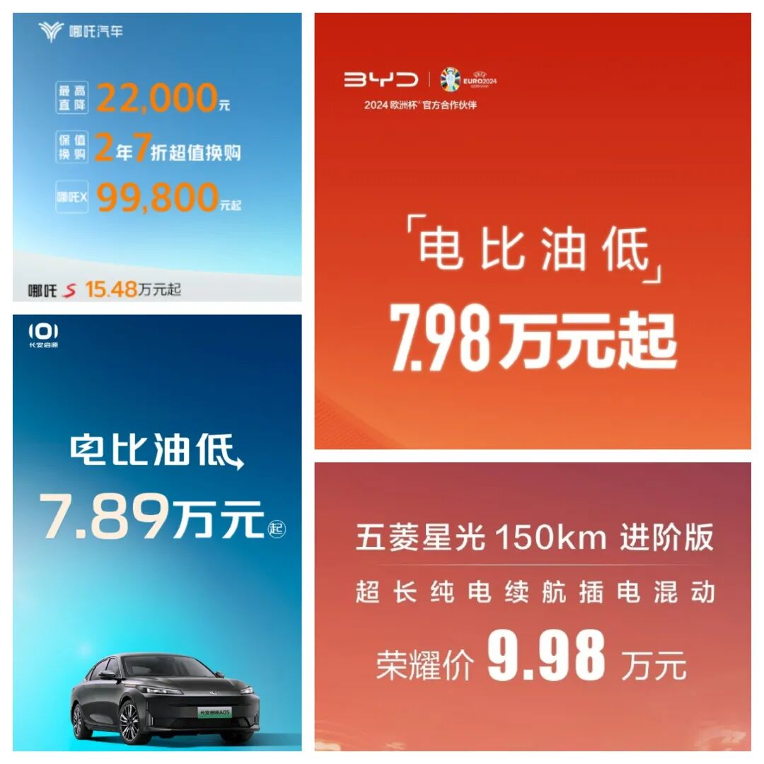 此番,荣耀版的上市,是A级DM-i车型首次进入7万元区间,EV车型杀入10万元区间。与市面上主流的合资燃油车对比,无论是混动还是纯电,都已实现了“电比油低”。