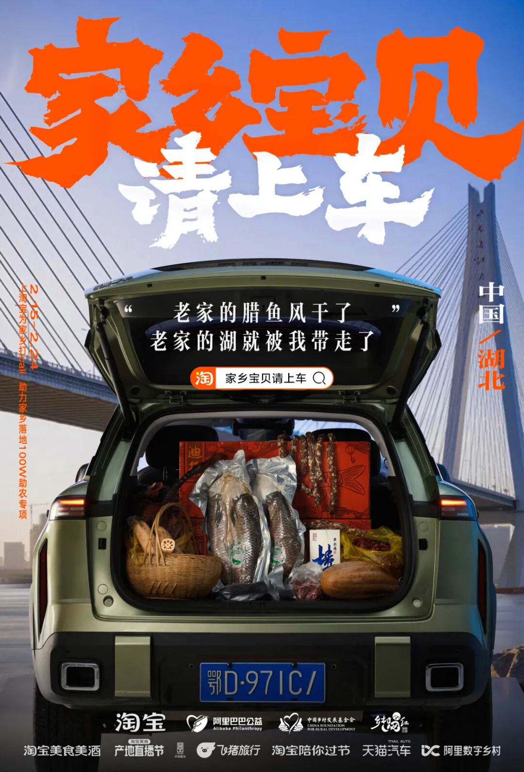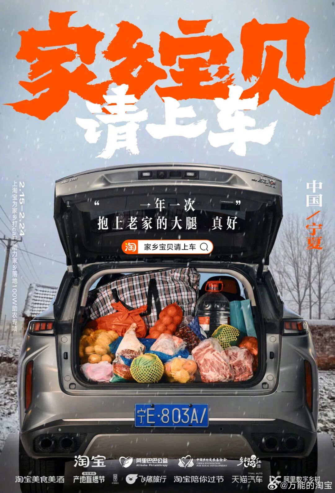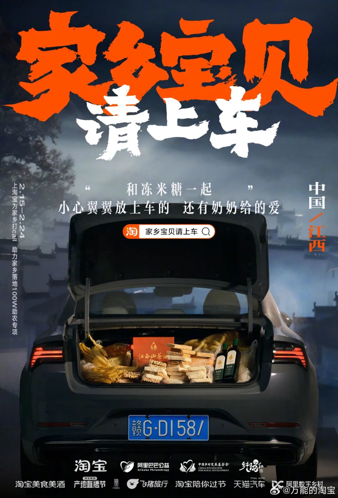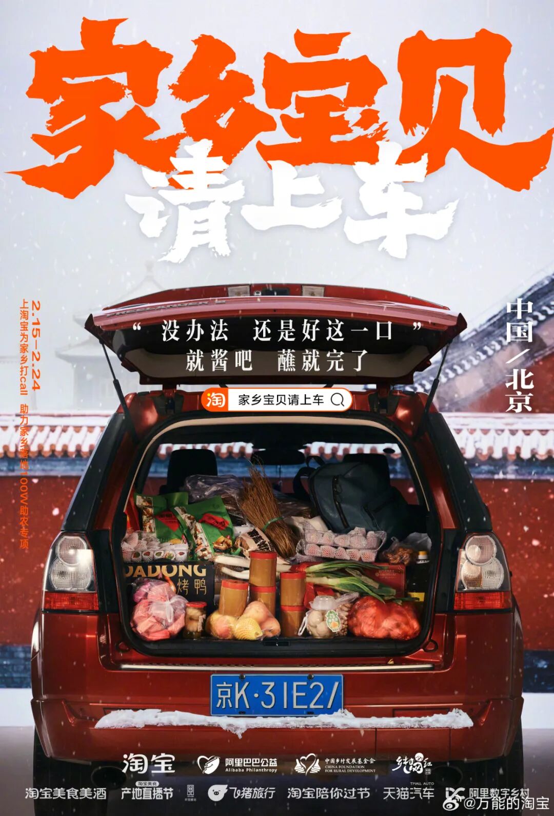 正如作家张佳玮曾说:“我猜许多不在故乡的人,都有类似的感觉——再好吃的东西,吃下去,总不如家乡的来得香,来得踏实,总隔了一层。”这正是家乡味的魅力。因为食物里承载的更多的是一种故乡的记忆,更是承载你的童年、少年梦的地方,和父母浓浓的爱。“露从今夜白,月是故乡明。”在外漂泊的游子,无论离家多远,故乡始终是你最牵挂的地方。《朗读者》里说道:“故乡是一座桥,跨越岁月的羁绊;故乡是一根线,牵引着不管多远的归人。”淘宝用后备箱的故事做营销,发起了一个线上打call——「家乡宝贝请上车」活动,鼓励大家为自己的家乡宝贝助力,为更多人种草家乡特产。用户上淘宝搜索关键词「家乡宝贝请上车」,便可以进入到这次活动的主会场,找到自己的家乡宝贝为它打 call。最终排名进入 TOP2 的省份,中国乡村发展基金会会挑选贫困村,落地总价值 100 万的「小农机助力乡村振兴」公益项目,帮助当地获得小农机援助、技术培训等扶持。淘宝借后备箱这个创意,以TVC和34个省级行政区海报为传播载体,发起公益行动,带动更多人为家乡助力乡村振兴。从线上活动落地到线下公益活动,打造了一次公益项目闭环。这是因为淘宝洞察到了游子们对家乡那份浓浓的乡愁,才有了这次朴实而走心的传播。这份细腻的后备箱文案,是AI写不出的洞察。