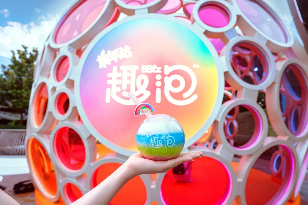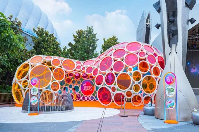 在线下品牌以“美年达彩虹趣泡”为设计灵感,将产品放大做成了一座同款“美年达彩虹趣泡光影空间”,并搬进上海迪士尼乐园明日世界主题园区现场。在年轻人猎奇心理的驱动下,他们也会体验到当中的新鲜有趣。