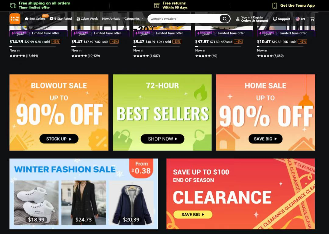 此前Temu的配送时长达到了7-10天,与速卖通相比即使有低价优势,但物流速度却差了一大截。而通过“半托管”模式,Temu可以吸引更多拥有海外仓的商家加入,提升物流速度同时丰富产品种类。