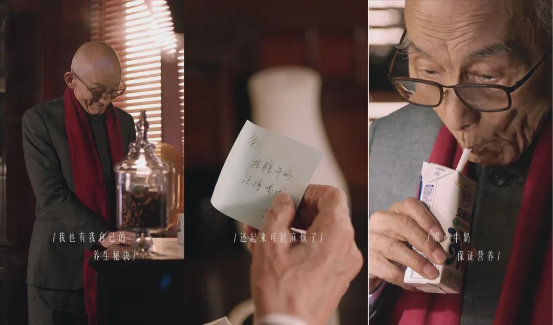 以此为关照,笔者就留意到伊利旗下的舒化安糖健,借势《繁花》和饰演爷叔的游本昌的热度,洞察年轻人的春节情绪需求,打造了一支短片《底气》,兼具视觉观赏性和人文思考价值。