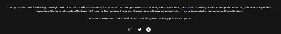 尽管在品牌官网上,川普出了“免责声明”,声称“与政治无关,与任何竞选活动无关”。