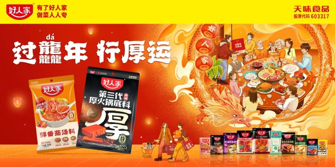 在品牌层面,好人家对于品牌形象的塑造并不局限于商业价值,而在于商业、人文以及社会全方位的价值赋能。从“厚运”开始,好人家正是观察到社会大众对新一年的期待,牢记“用美味创造美好生活”的使命,深耕调味产品,用硬核的产品力给足大众美味的年味认知,更深入融入到新一代「过年主理人」的美味生活中,不断引领行业变革创新,成功拿下年味市场,在新的一年给大众带去龘年厚运。