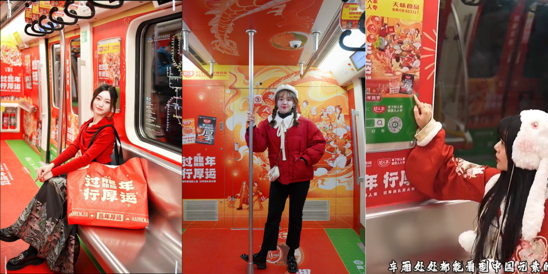 话题内容固然能为品牌的传播增效,但过年的主角不是品牌,而是用户。鉴于新一代「过年主理人」更为注重体验感和热衷分享的特性,好人家在成都地铁1、2、7号线,着手打造充满“厚运”的地铁专列。