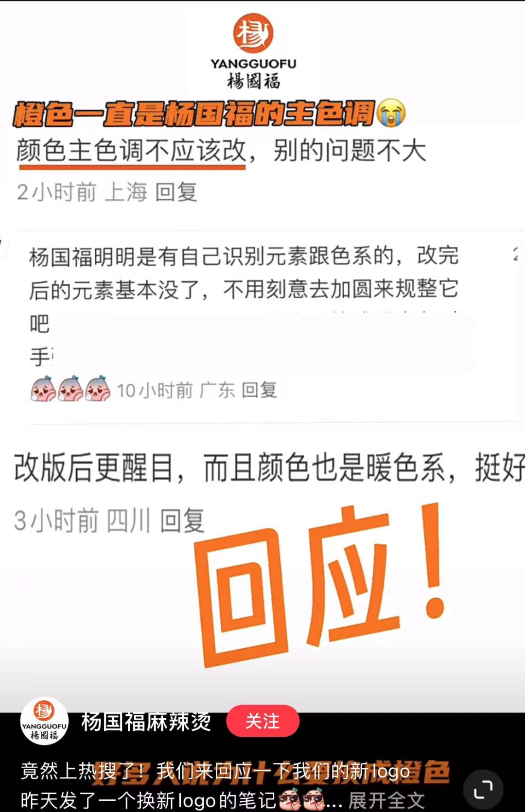 因为大众对改LOGO颜色的不满和质疑,杨国福甚至还专门出了回应。