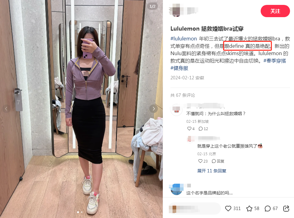 在这条充满想象力与画面感评论的引领下,这款bra瞬间成为了lulu家2024开年第一大爆款。