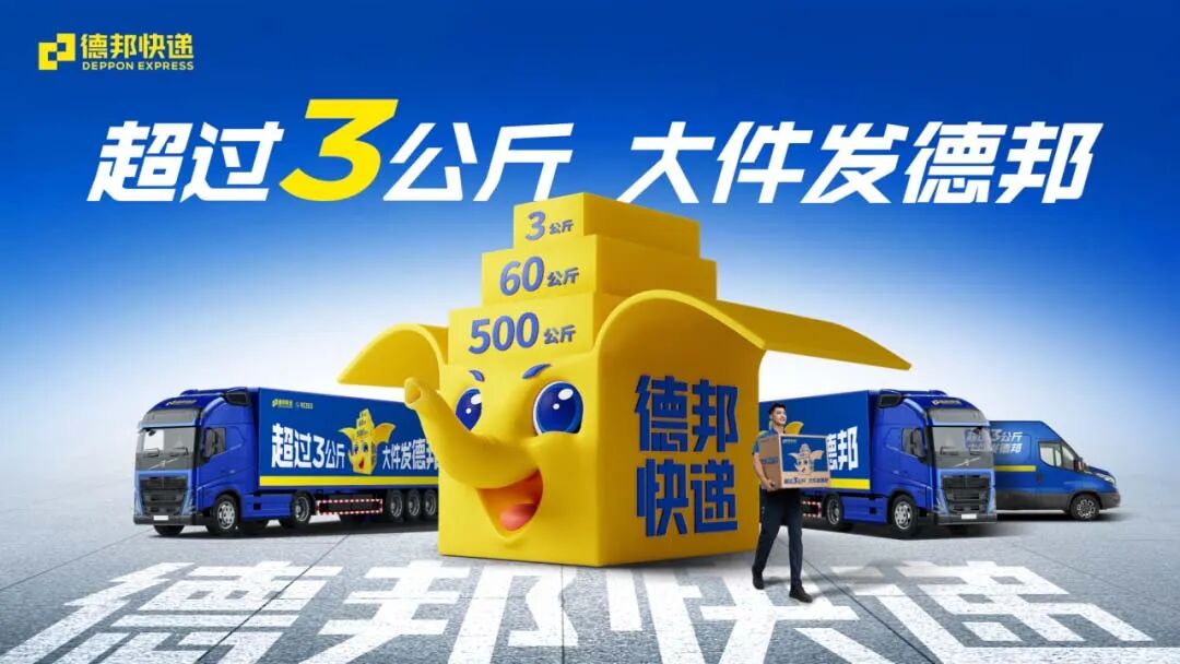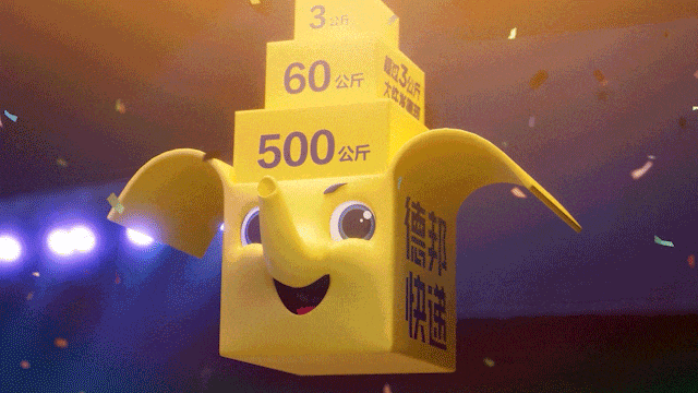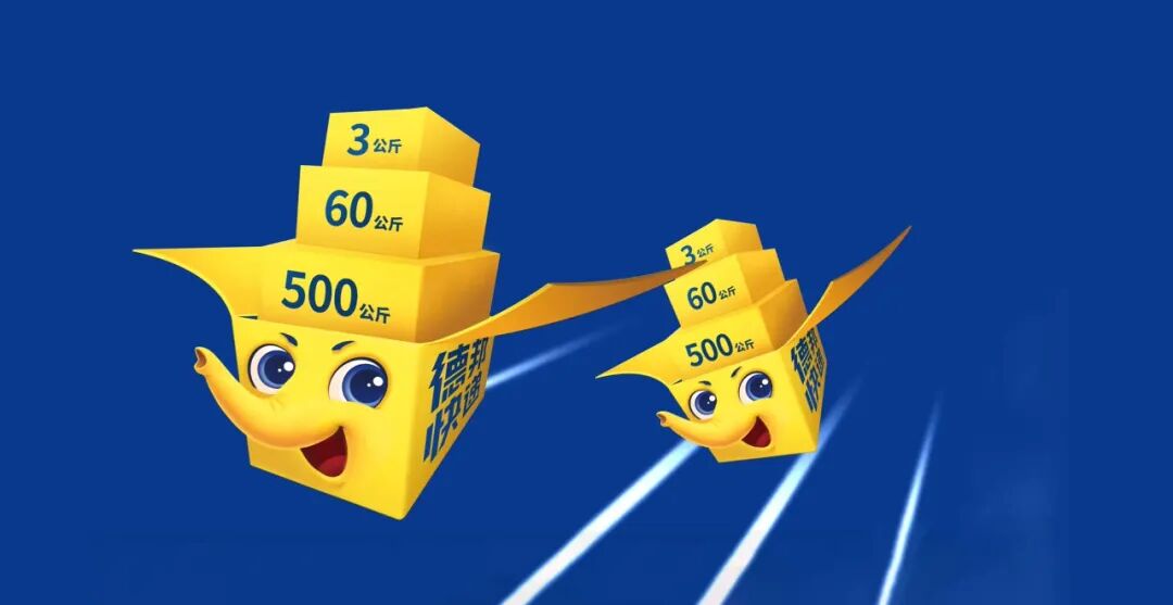 据了解:飞象可爱的表情彰显德邦快递员“亲切服务”的精神;飞象承载的3个不同公斤段的快递盒,体现从3公斤到60公斤再到500公斤都是德邦快递擅长的领域。
