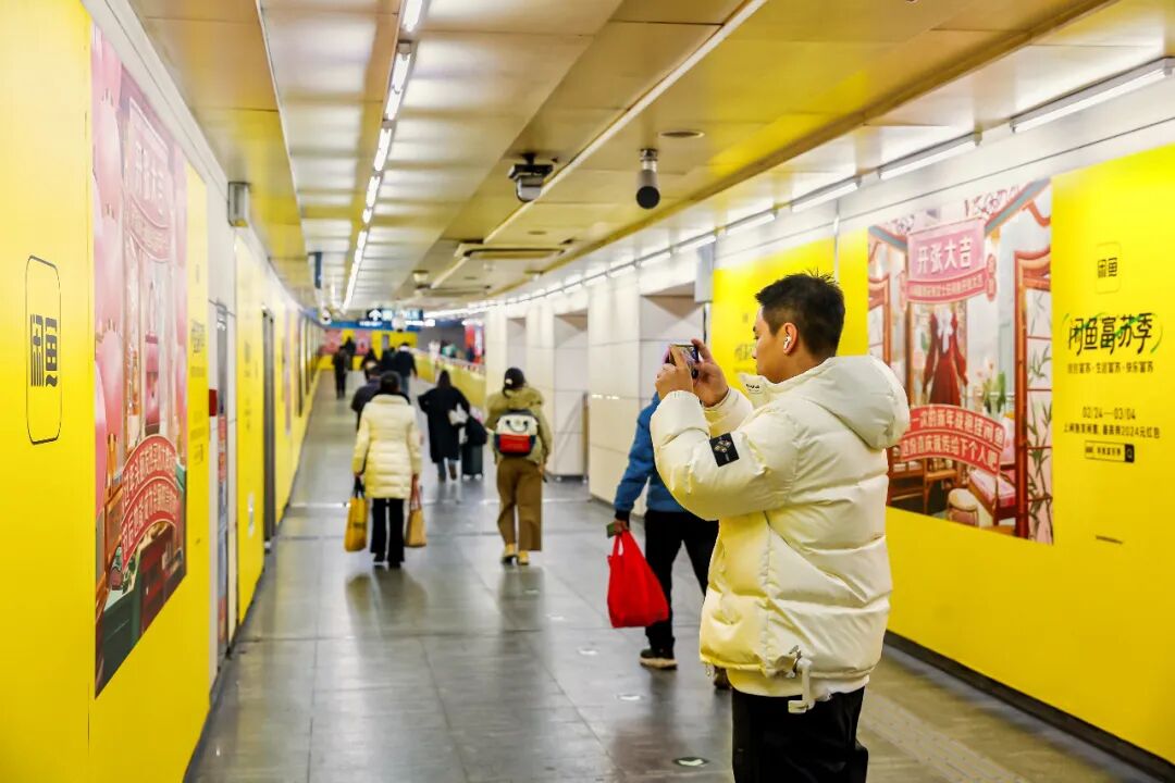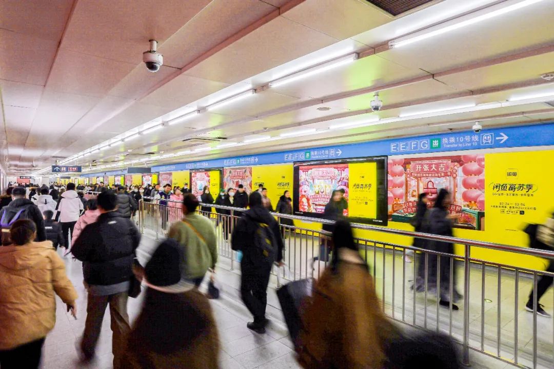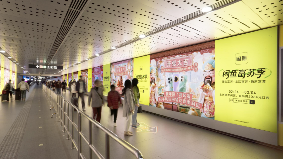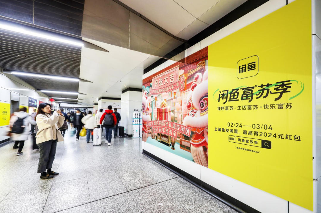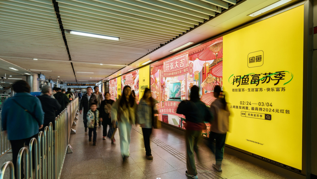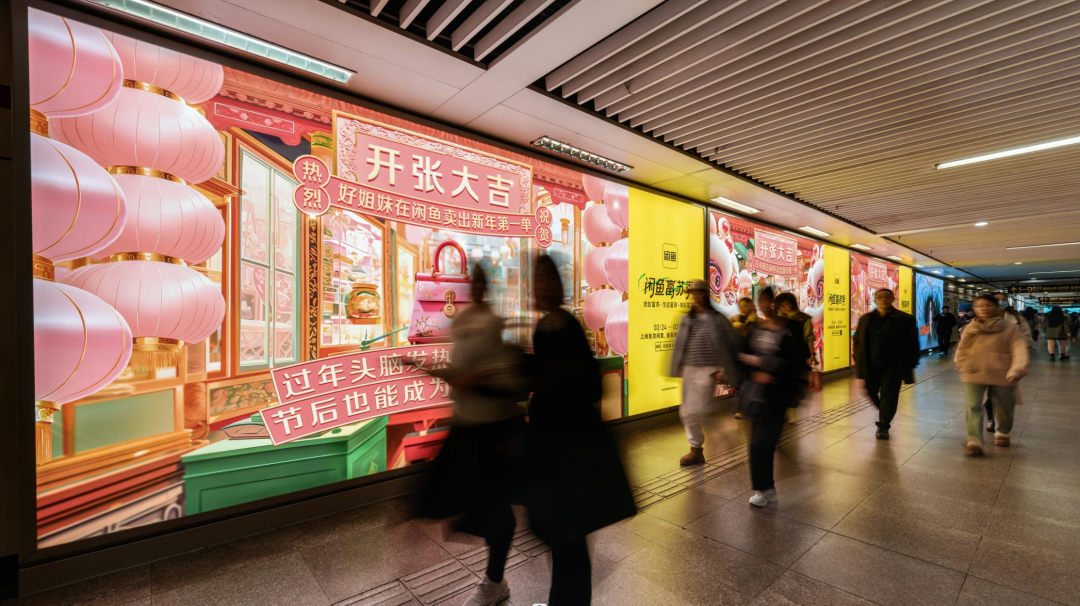 返工第一天,闲鱼便承包了各大城市核心换乘地铁站打造「开张大吉」现场,以沉浸式场景体验放大「开张大吉」赚头彩的积极心理暗示。