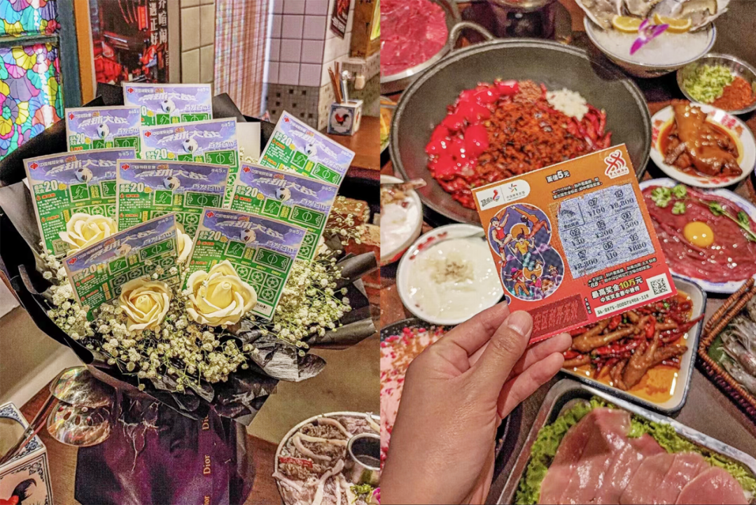 而内卷也当属火锅店。长春一家火锅店,向顾客赠送了一束彩票花,用彩票花的方式为顾客提供祝愿,顾客一边吃火锅,一边刮彩票,一餐体验到了双重的快乐。
