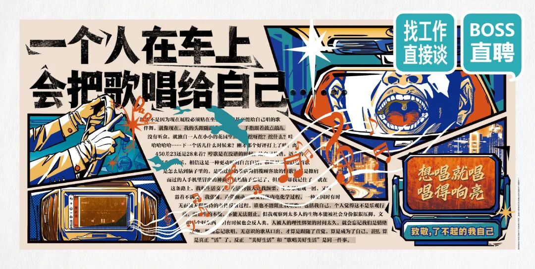 每句文案都以致敬了不起的我自己结尾,是打工人写给自己的赞歌,也是BOSS直聘给打工人的鼓劲打气。