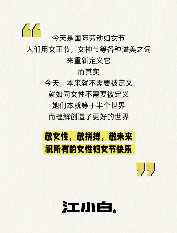 今年,圈佬就带大家把三八节品牌借势文案盘起来,供需要的朋友拿去补充灵感——