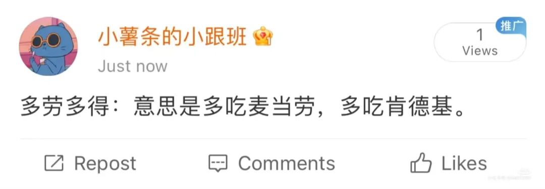 而宝马麦当劳拿出打工人自嘲的梗,去对着它的消费目标人群吆喝,就会造成话语与主体错位,让玩梗、蹭热度显得尴尬又冒犯。