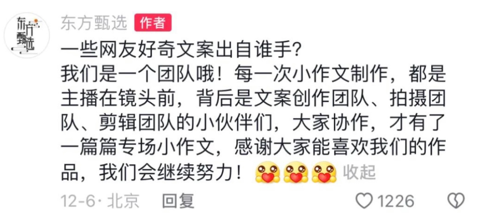 董宇辉陷入小作文风波,就是小编在评论区说董宇辉并不是每篇文案都自己写,引发饭圈不满。