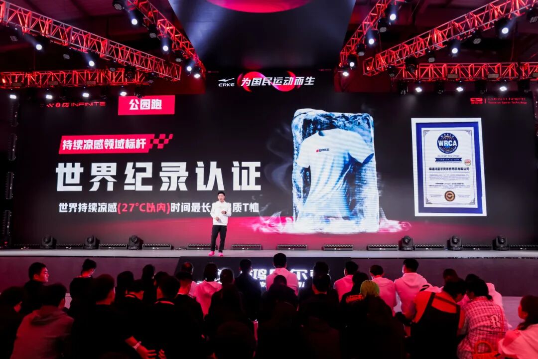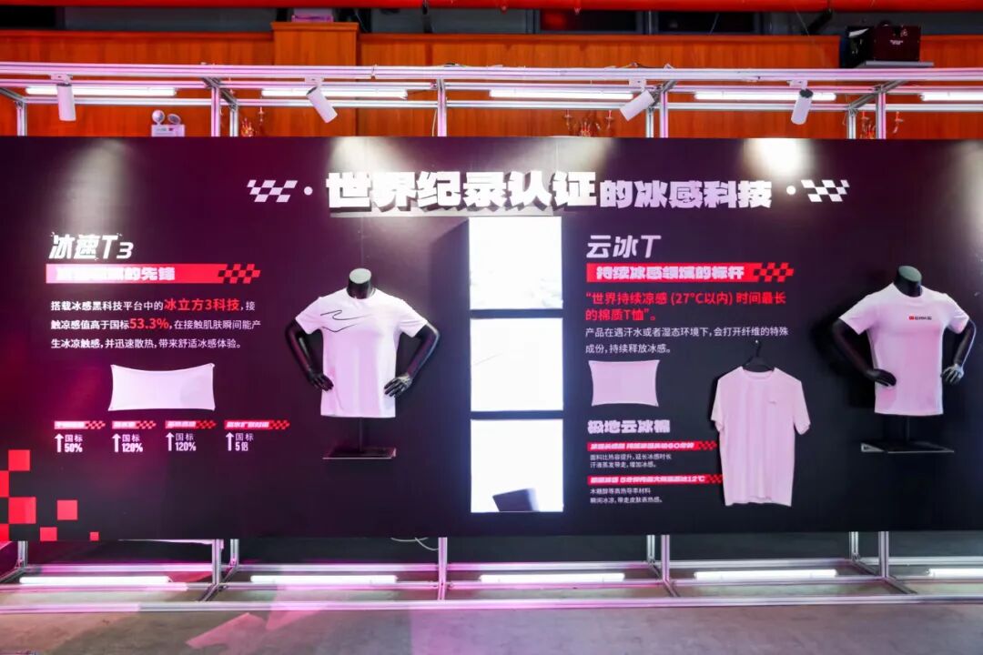 此外,基于对跑者运动体验的高度重视和不懈追求,鸿星尔克持续加大对功能面料的研发力度,聚焦科技突破,打造比肩国际水平的专业运动装备,本次303运动科技日还推出包括安全、舒适、轻量、环保可再生的专业面料科技,发布了从跑步背心、短裤,到运动紧身裤、皮肤衣等多款最新科技运动服饰,其中鸿星尔克获得世界纪录的“极地云冰棉”冰感T恤也正式对外发布。