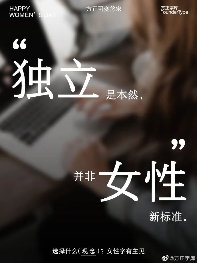 设计什么字体,设计师自己说了算;选择什么人生,女性自己说了算。无需定义,字有主见。方正字库精选4款字体,拒绝性别化标签,为女性发声。
