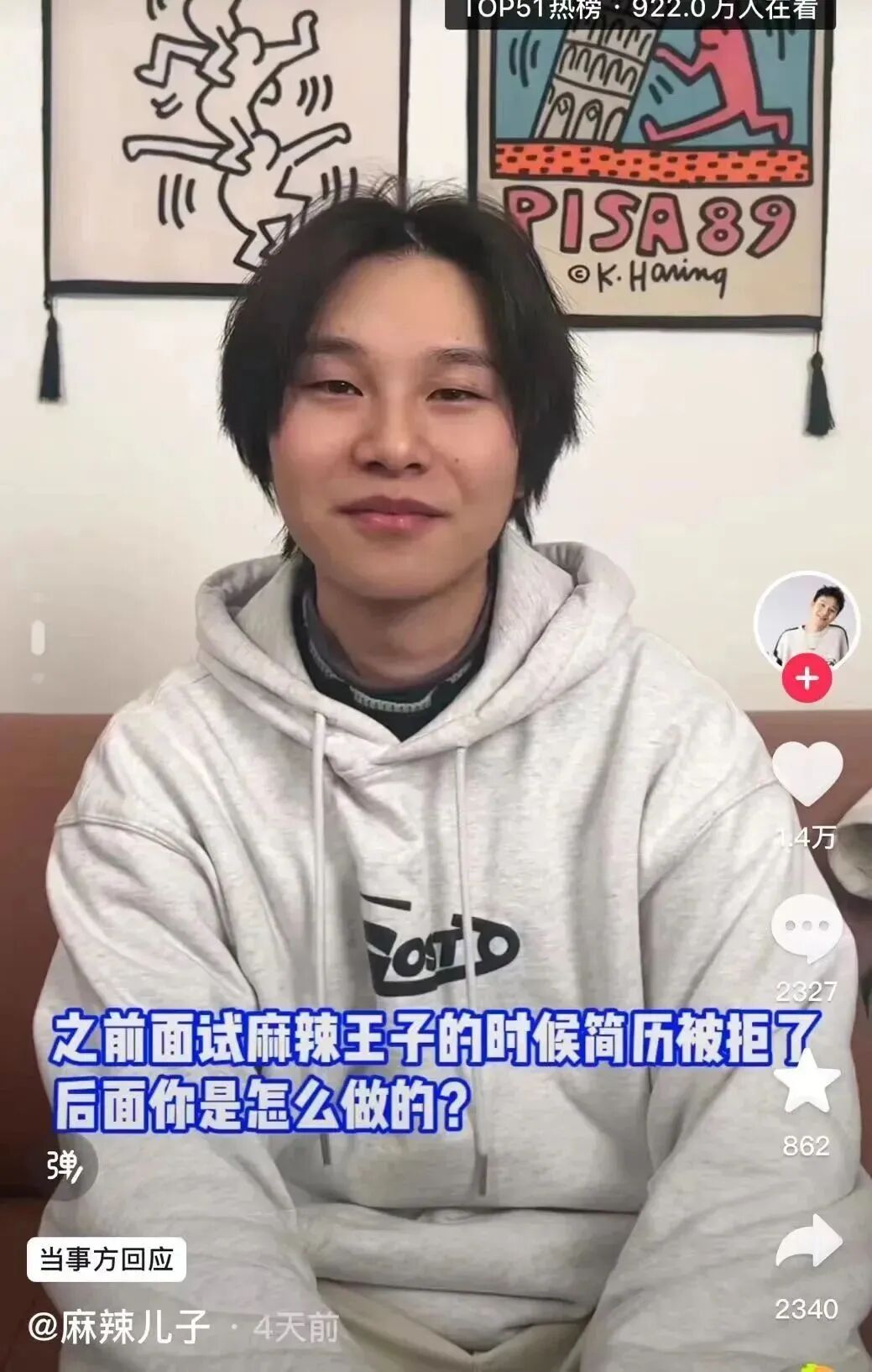 麻辣儿子还爆料,自己还偷偷向麻辣王子一个月薪4K的岗位投过简历,但是没能通过海选。