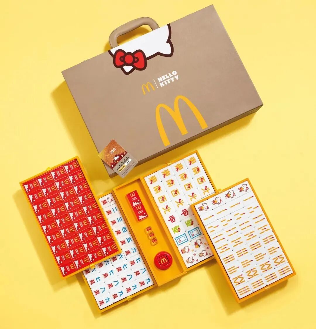 而再看Hello Kitty联名的正确打开方式,我们会发现风格都统一指向了两个词:高颜值,少女心。比如麦当劳和Hello Kitty联名推出的麻将周边,通过对蝴蝶结等经典元素的排列组合,把颜值拉满,深受广大粉丝的喜爱。