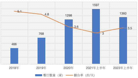 2021年海底捞急刹车,在11月作出关闭300家店的决定,并且把翻台率作为经营战略的判断点,纠正了一度对餐厅考核重数量、轻业绩的冒进状态。