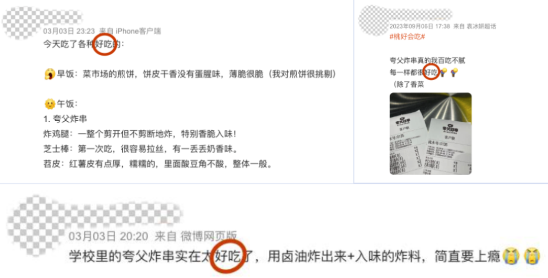 “贵”是夸父炸串最明显的标签,“好吃”则可以排在第二位。