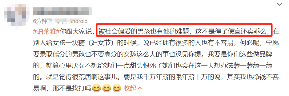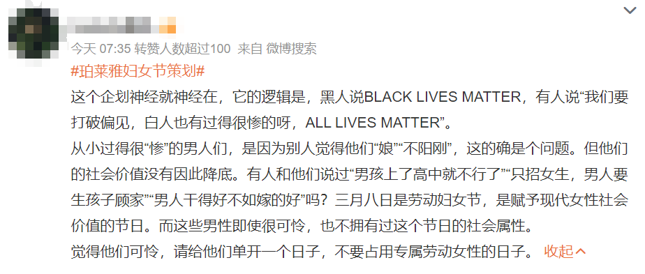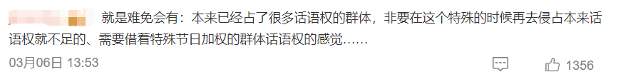 因此在女性群体好不容易争取的,本该属于女性庆祝的节日里,输出本就在社会中处于强势一方的男性相关内容——