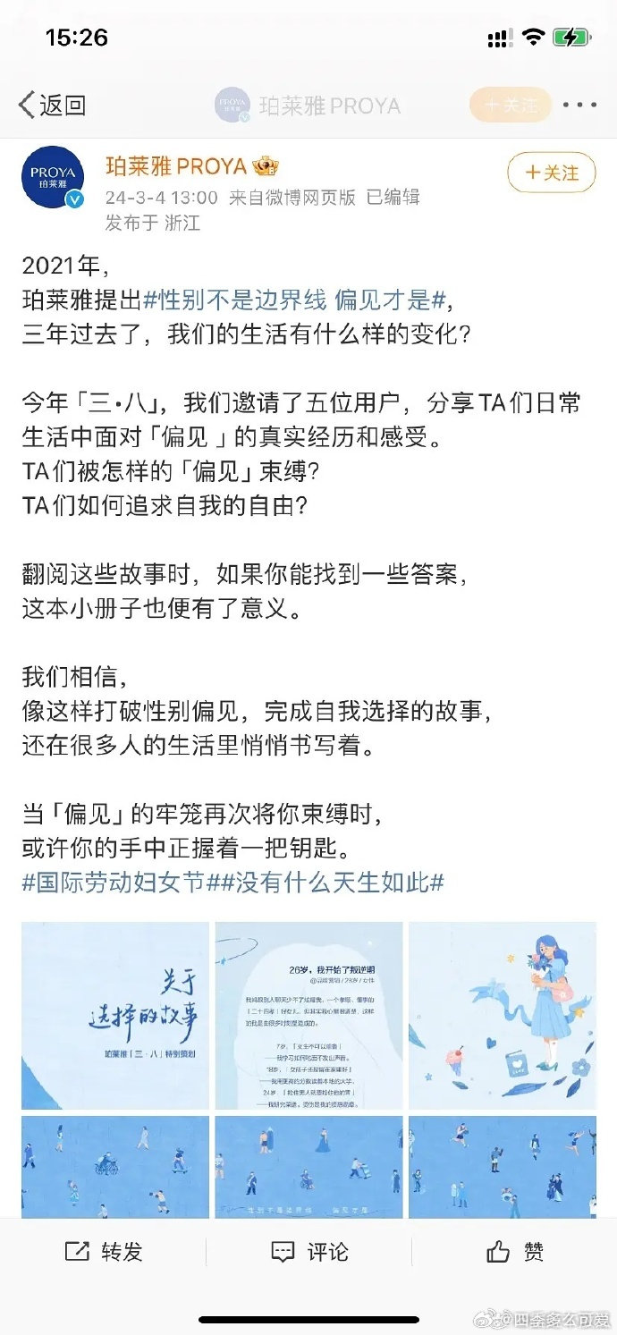 总之,相信对于珀莱雅来说,怎么都没想到会在这件事情上翻车。只能说,现在的女性环境和意识变化很快,还是需要品牌小心琢磨。